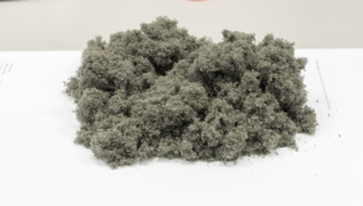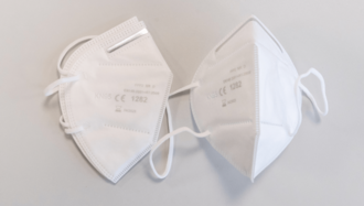 The second test documents the shredding of FFP2 protective masks. Metal parts which were on the masks had to be removed prior to the comminution process. The PULVERISETTE 19 was equipped with the standard rotor with V-cutting edges, as well as a sieve cassette 4 mm square perforation. The grinding time was 45 seconds.