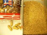 10 kg peanuts, walnuts, filberts, Brazil nuts or also almonds must be comminuted so fine in a passable period so that a homogenous sample evolves which eliminates contamination with other samples and the cleaning of the instrument is possible in an acceptable time.