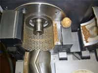 In less than 2 minutes were all nuts comminuted. Approximately 15 to 20 minutes have to be assumed for a sample of 10 kg. An ensuing glance into the opened Cutting Mill shows a good throughput of the walnuts. The sieve was unclogged. Additional material could have been put through. The rotor was removed without tools from the engine shaft and placed in front of the sieve. The sieve cassette was also removed without tools. Therefore all parts which need to be cleaned are very easily accessible.