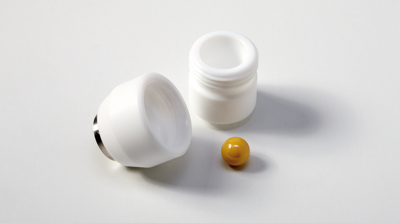 The 5 and 30 ml PTFE grinding bowls are especially suited for using the FRITSCH PULVERISETTE 23 in biotechnology applications. For example, it is possible to break up fungus or yeast cells, deep frozen tissue and cells in only a few minutes with this special plastic bowl and the corresponding grinding balls. It is also possible to pre-cool the entire bowl in liquid nitrogen.