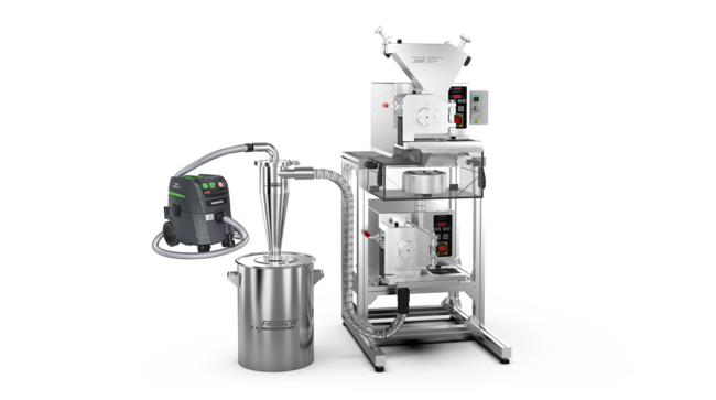 At the same time, the powerful airflow of the FRITSCH Cyclone separators enables the use of finer sieve cassettes to achieve a higher final fineness – even for materials, which are otherwise difficult to comminute finely.